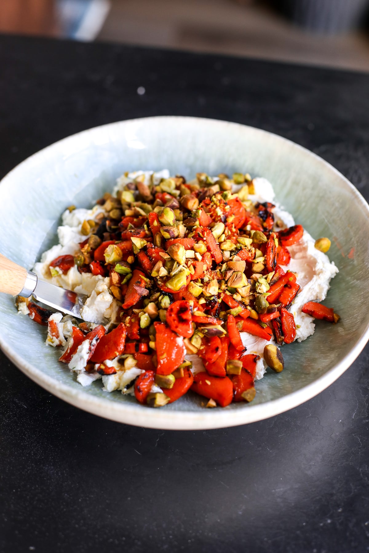 - Pour carrots over whipped goat cheese and top with chopped pistachios.